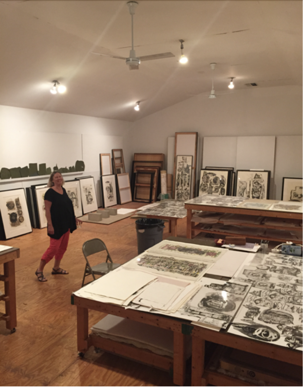 Marrin in Michael’s print studio, (Photo by Kim Benzel)